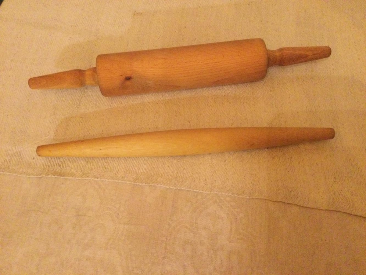 Ég gerði,alltaf deigið og flatti út. En til gamans má segja að fyrsta árið okkar sagði maðurinn minn að,að fletja út væri karlmannsverk, það væri of þungt fyrir konur. Svo braut hann kökukeflið mitt. Eftir þá reynslu pantaði ég finnskt kökukefli og notaði það og flatti alltaf út sjálf. En finnskt kökukefli er hannað til að fletja út kringlóttar þunnar kökur. Ég hef séð sama formið á keflum einnig í Marokkó,og Kína en þeirra kefli eru minni. Sbr. myndina.