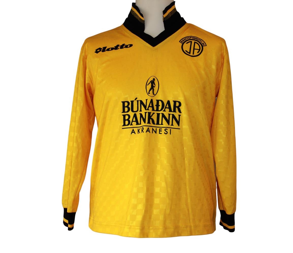 ÍA-peysa með auglýsingu frá Búnaðarbakinn Akranesi á bringu og á baki er merkt númer 9