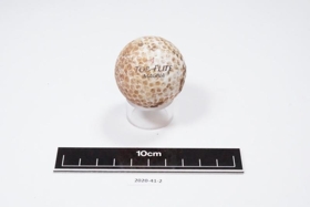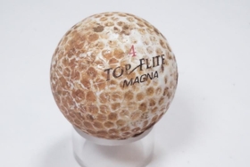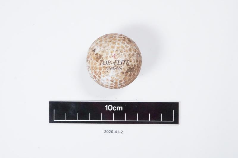 Heil hvít golfkúla af gerðinni Top Flite Magna sem fannst í yfirborðslagi norðan við refagildruna.