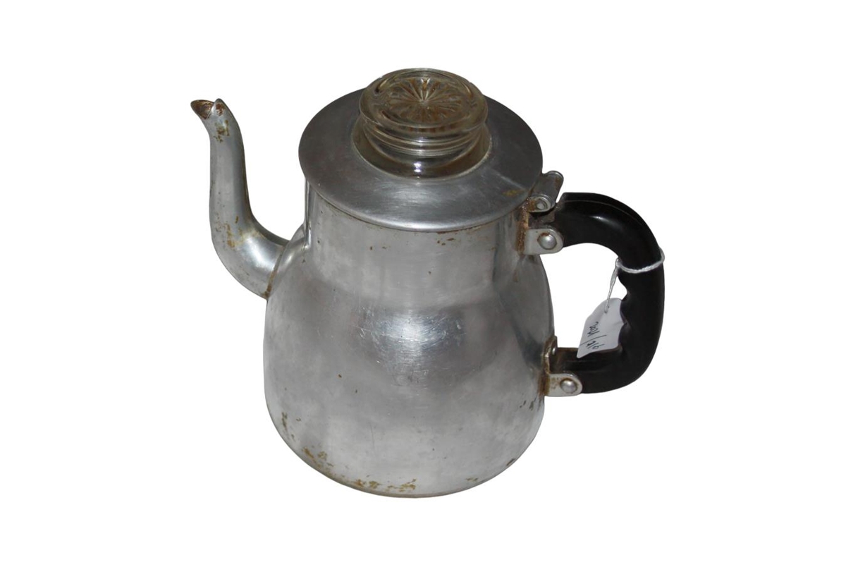 Kaffikanna úr áli með loki úr glæru gleri. Hellt var upp á slíkar kaffikönnur, sem voru undanfarar sjálfvirkra rafmagnskaffikanna. Hún var notuð frá ca 1955 til 1980 þegar Guðrún fór á Dvalarheimilið á Höfða
