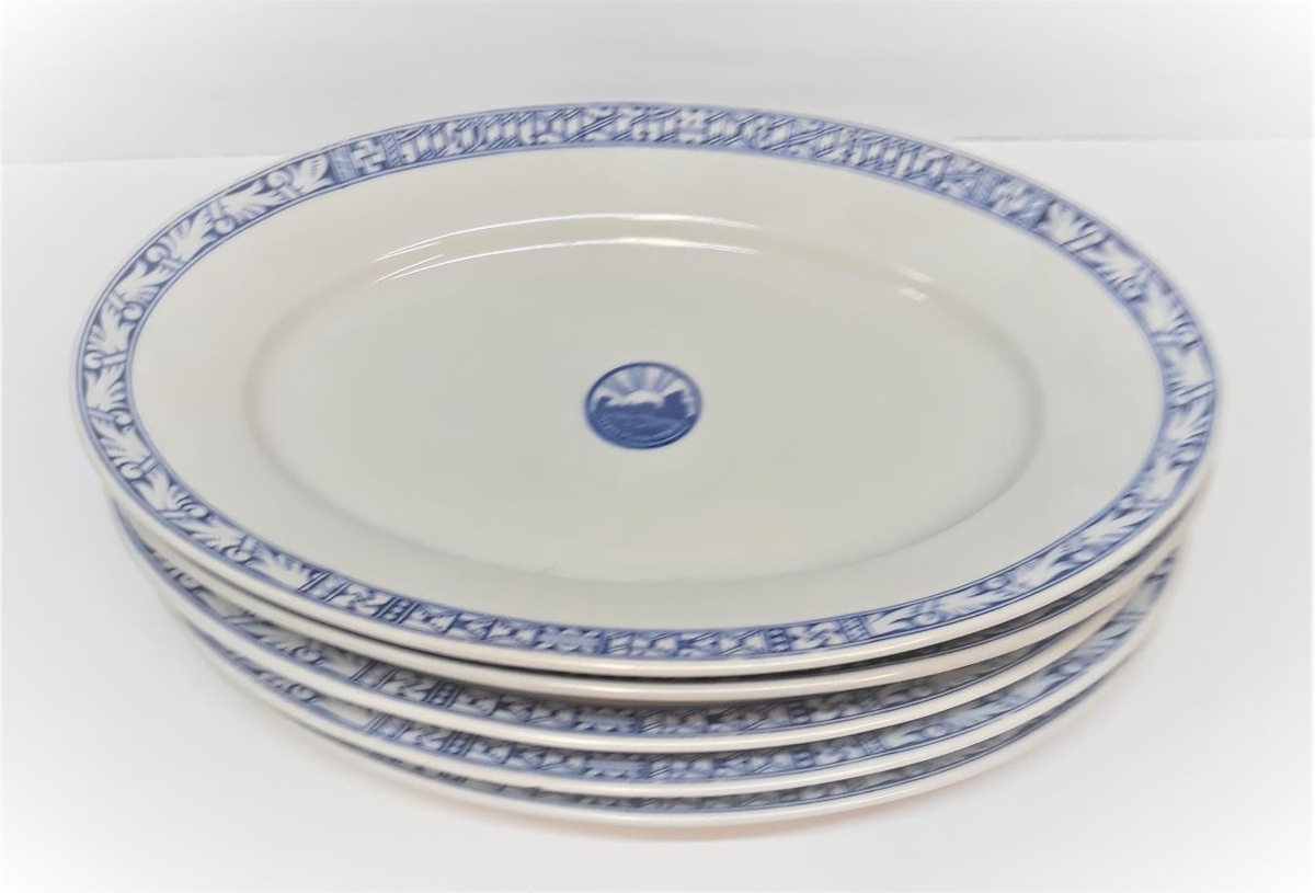 Á allt leirtauið er prentuð höfðaletursrönd í bláum lit. Á diskum stendur: ALÞINGISHÁTÍÐ ÍSLANDS 930-1930 en á bollum stendur: ALÞINGISHATIDIN 1930. Á diskum er merki alþingishátíðarinnar á miðjum disk.