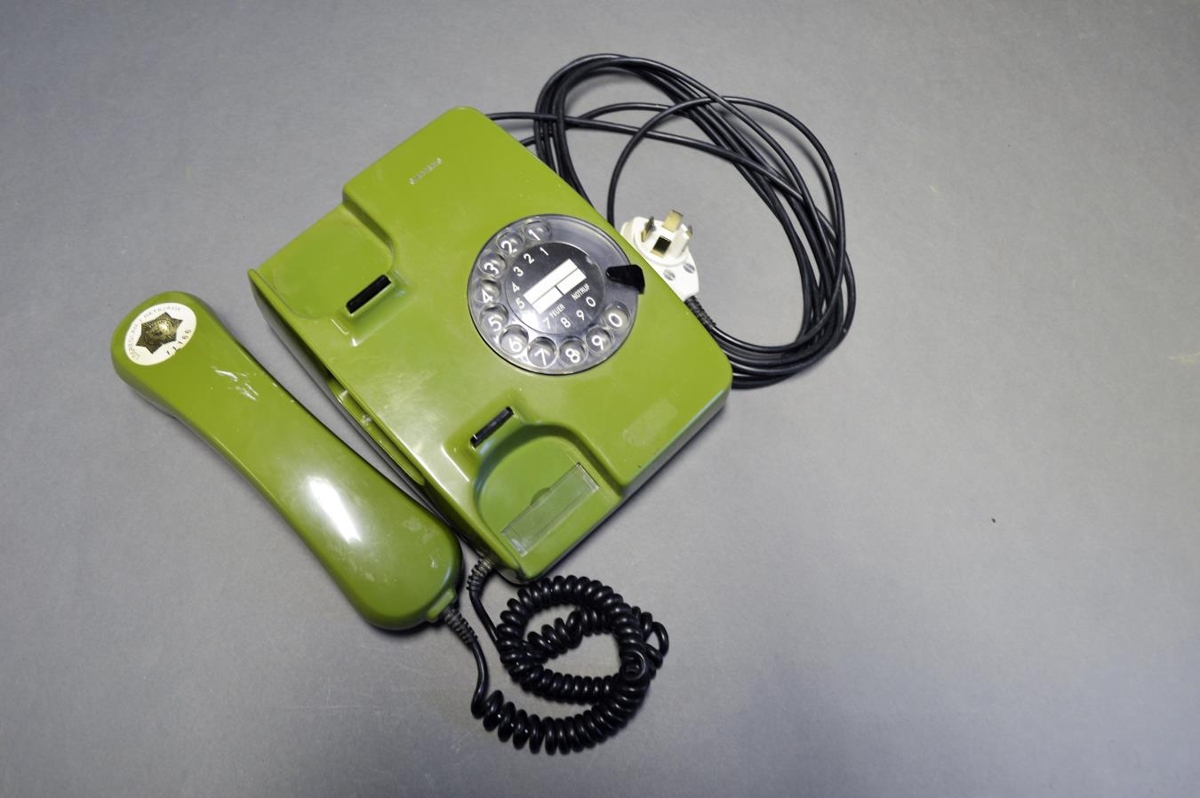Sími, grænn skífusími frá Siemens, frá 1979 úr eigu Þorgils.