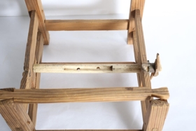 Litill bandvefstóll úr tré og horni. Var í eigu móður gefanda, Sólveigar Sigurjónsdóttur (1932-2017). Trúlega smíðaður af afa Sólveigar, Jóni Þórðarsyni (1860-1933), bónda í Snæhvammi í Breiðdal.