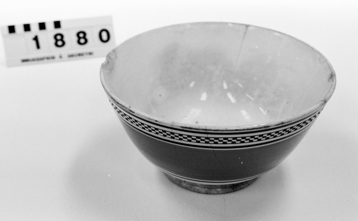 á hvítir og svartir reitir. Skálin virðist vera mjög gömul og dálítið sprungin