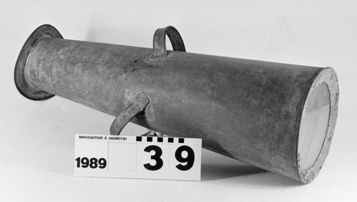 sem mjókkar upp. Á miðjum hólknum eru tvö handföng úr sama efni og hólkurinn.