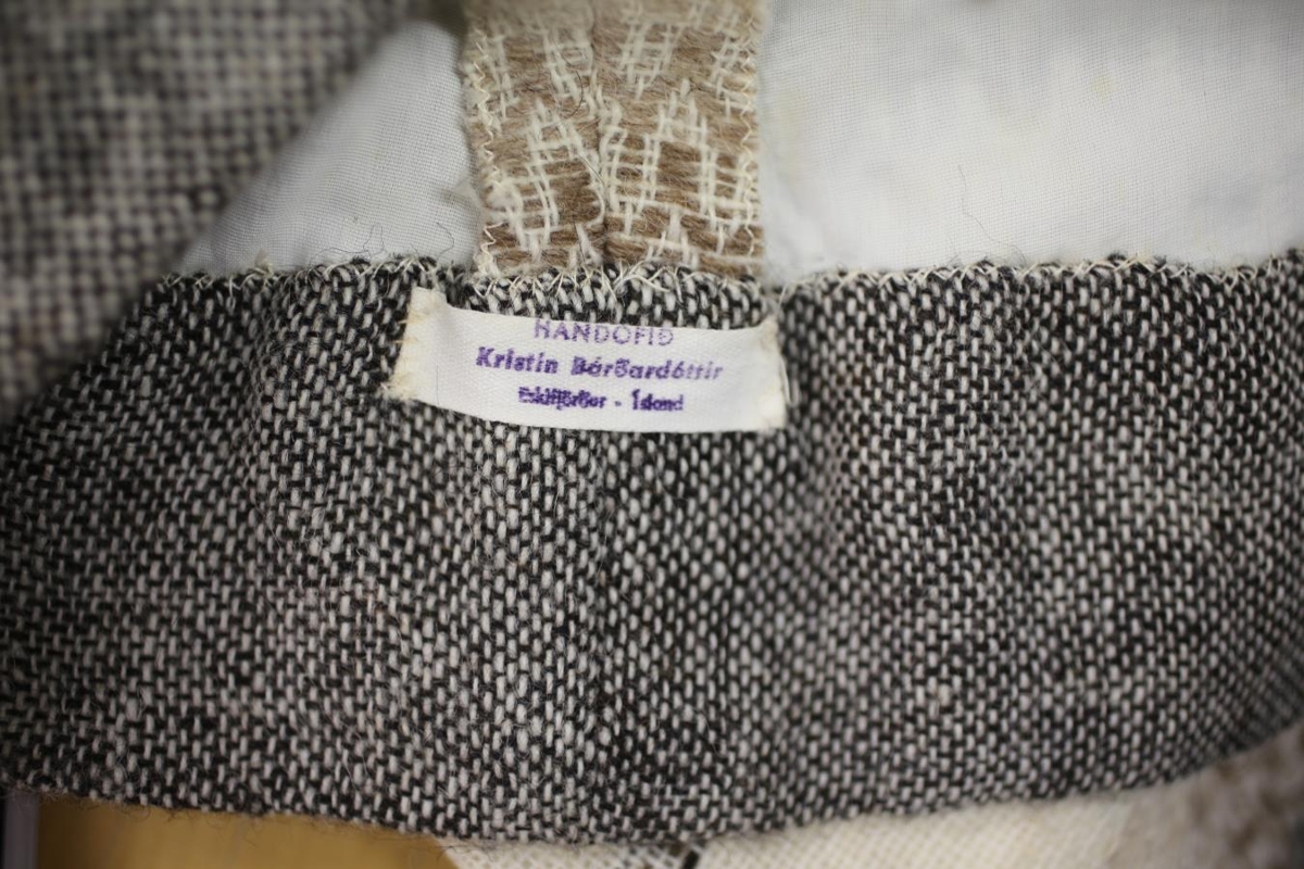 Kjóll, ofinn af Kristínu Bárðardóttur á Eskfirði en saumaður af Fanneyju Guðnadóttur, saumakonu á Eskifirði. Kjóllinn sjálfur er hvítur en ofinn með sauðalitunum á ermum og pilsi. Renndur að aftan. Kjólinn átti Vigdís Júlíanna Björnsdóttir, móðir gefanda.