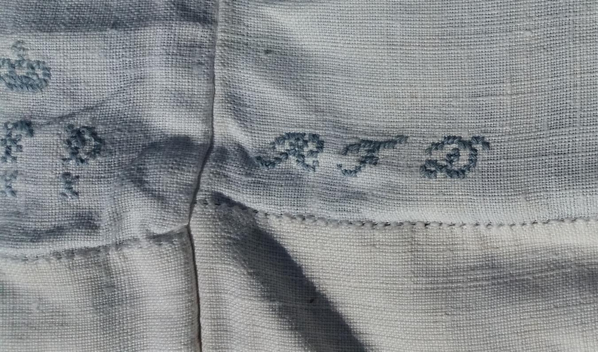 og úr dönskum hör. Merkt: Kóróna ísaumuð og stafirnir: K.F.D.
