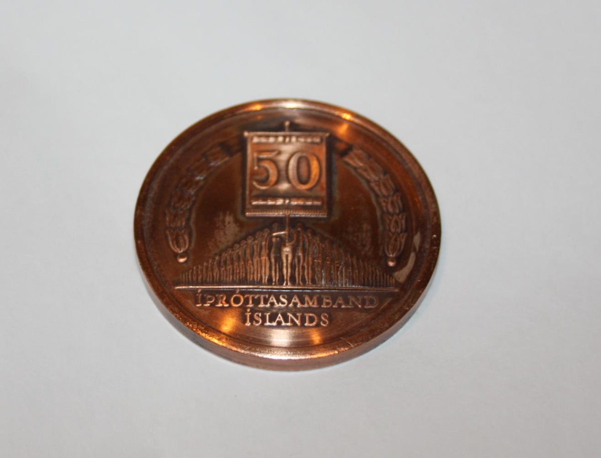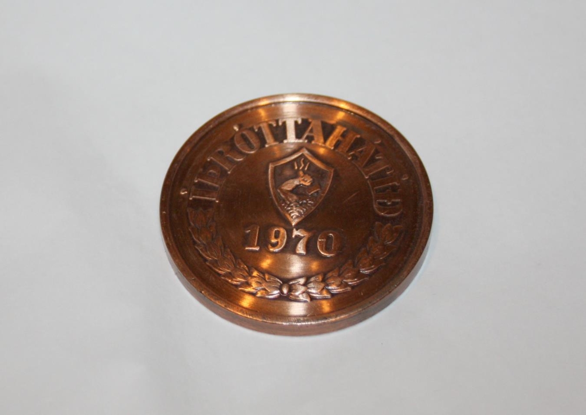 Þessi minnispeningur var búinn til af íþróttasambandi Íslands í tilefni íþróttahátíðarinnar sem haldin var í Laugardal árið 1970.