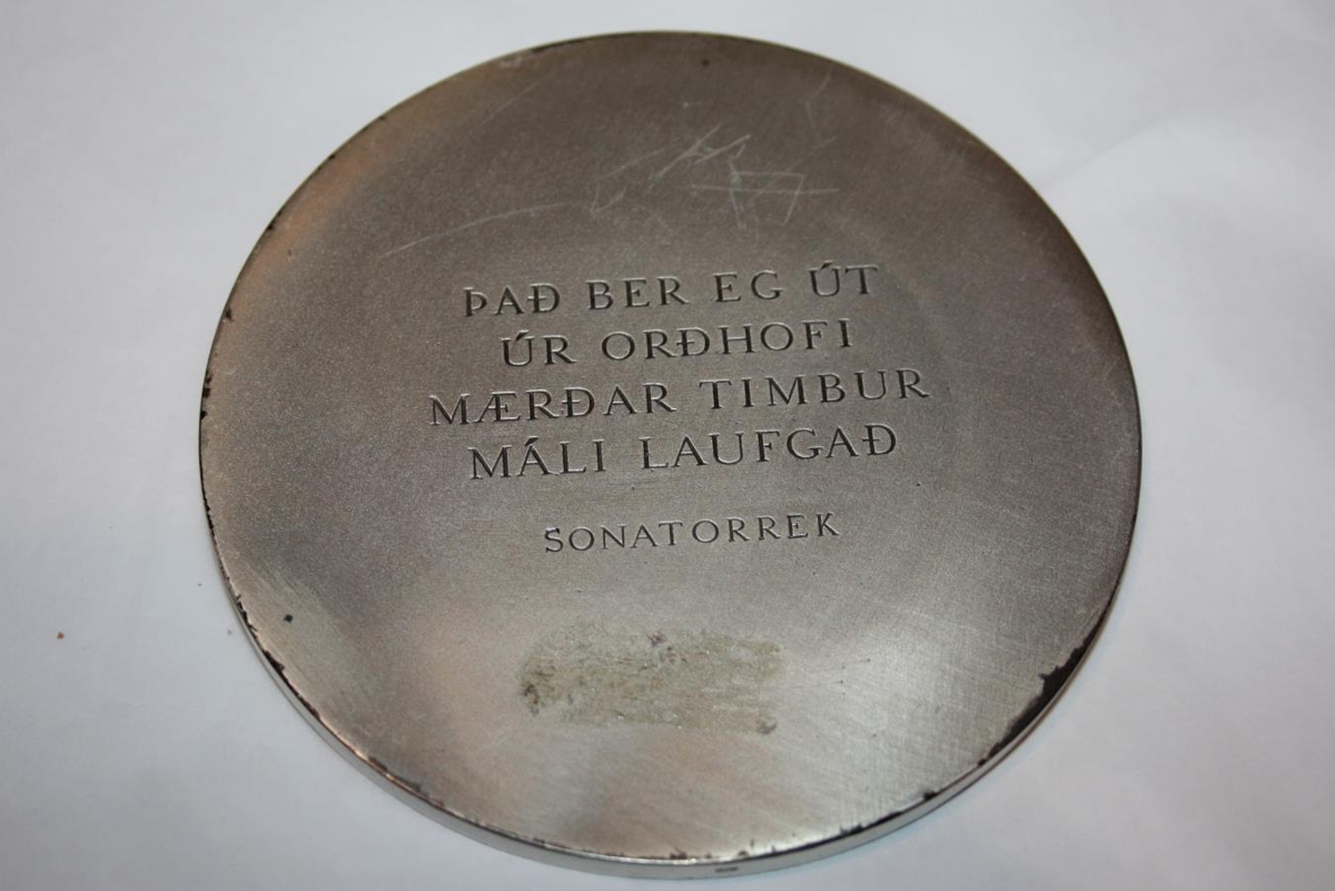 Þessi minnispeningur var búinn til af minningarsjóði Daða Hjörvar. Helgi Hjörvar útvarpsmaður og Rósa kona hans stofnuðu sjóðinn í nóvember 1958 til minningar um son sinn, Daða Hjörvar, útvarpsmann.