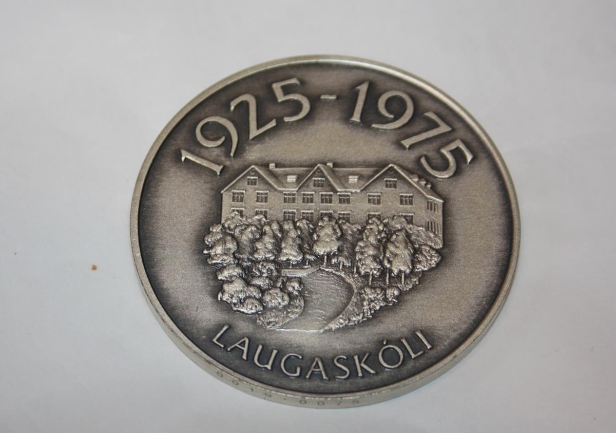 Þessi minnispeningur var gefinn út í tilefni af 50 ára afmæli Laugaskóla í Reykjadal og 60 ára afmæli HSÞ