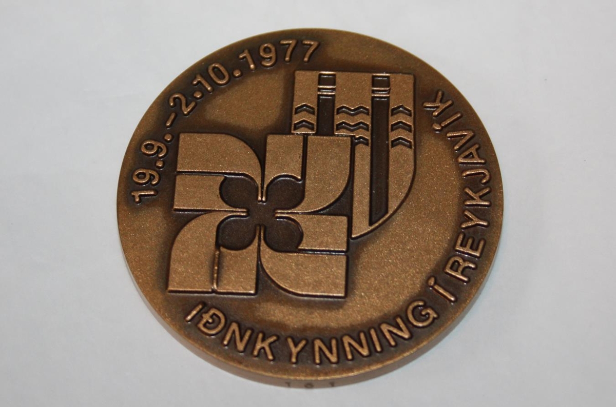 Þessi minnispeningur var búinn til fyrir Iðnkynninguna sem haldin var í Reykjavík árið 1977.