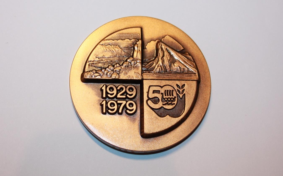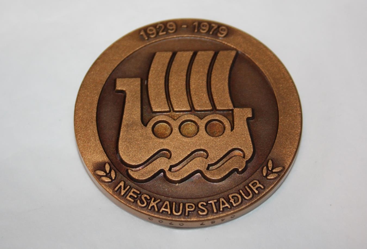 Minnispeningur var búinn til af Neskaupstað í tilefni af 50 ára kaupstaðarréttinda bæjarins.