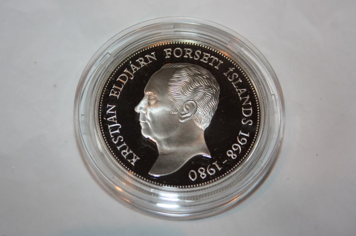 Minnispeningur gefin út í tilefni af 50 ára afmæli lýðveldisins. Á framhlið er skjaldarmerki Íslands og á bakhlið vangamynd af Kristján Eldjárn (1916-1982) forseta 1968 til 1980.