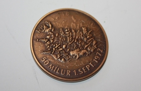 Minnispeningur var búinn til af útflutningssambandi gullsmiða Í tilefni af útfærslu fiskveiðilögsögunnar árið 1972. Allur ógóði af sölu peninganna rann í Landhelgissjóðs.
