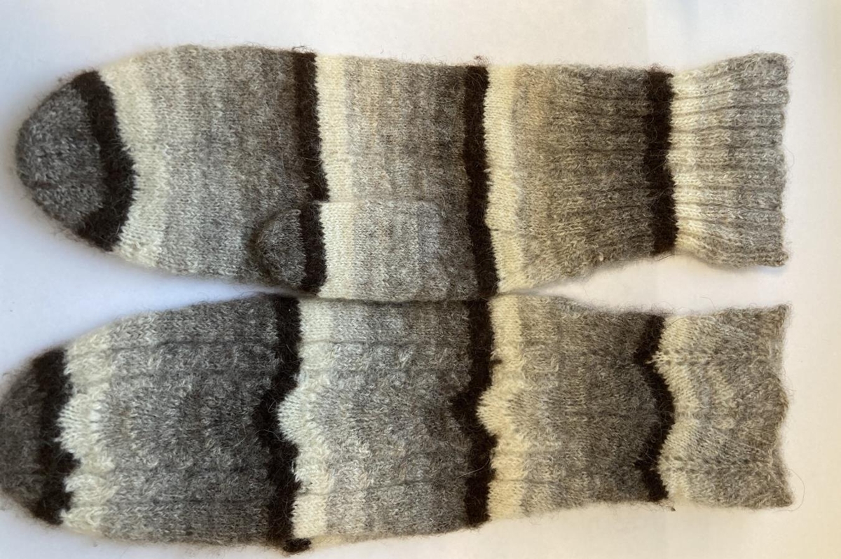 Vettlingar að öllu unnir af móður gefenda, Ingibjörgu Daðadóttur. Þelband, tvinnað.