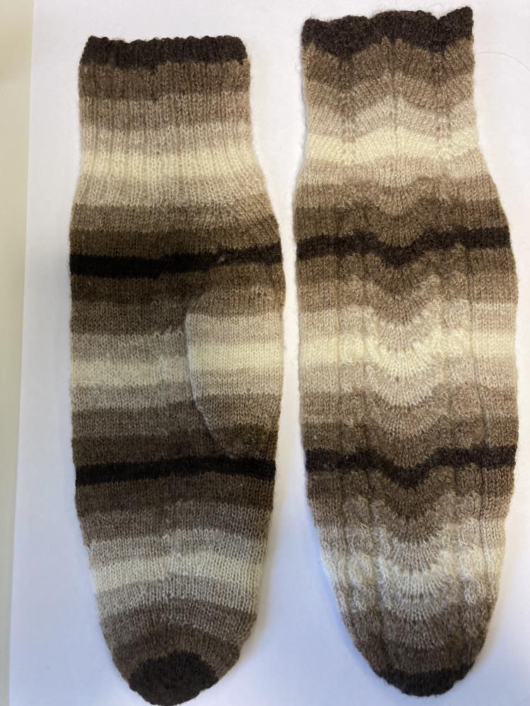Vettlingar að öllu unnir af móður gefenda, Inginbörgu Daðadóttur. Þelband, tvinnað.