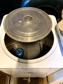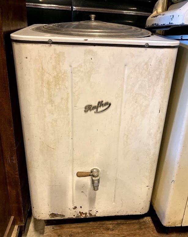 Rafmagns þvottapottur framleiddur af Rafha milli 1950-1960. Vöruheiti er PL100. Sigurjón Björnsson og Sigurbjörg Guðmundsdóttir í Vík áttu.