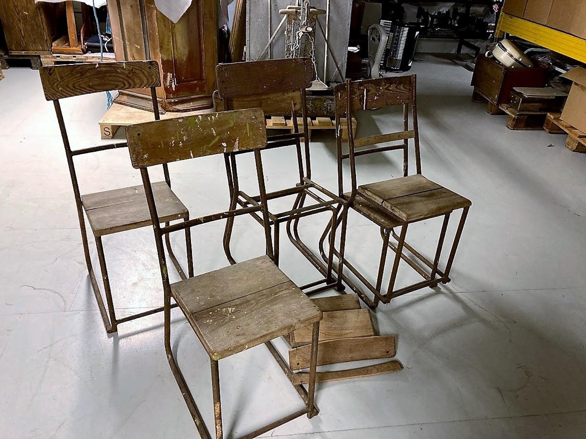 Sex stólar úr Deildarárskóla í Mýrdal. Hann var starfræktur frá 1904 til 1959 að var sameinaður skólanum á Ketilsstöðum. Skólahúsið var flutt á Höfðabrekkuafrétt þar sem það er enn notað sem leitarmannaskáli. H: 87 cm, breidd sessu 31,5, dýpt sessu 34 cm.