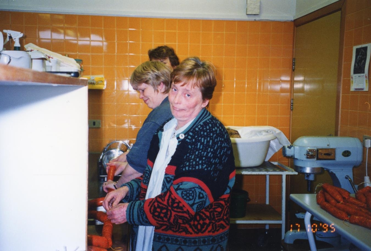 Bjúgnagerð í eldhúsinu á Laugum 19. október 1995.