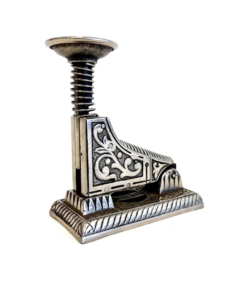 Heftari, silfurlitaður með gróðurmunstri. Úr búi Maríu Matthíasdóttur og Sverris Ragnars, sparisjóðsstjóra. Eitthvað af gripum úr gjöfinni er komið frá Ragnari Ólafssyni, föður Sverris, kaupmanni og ræðismanni.