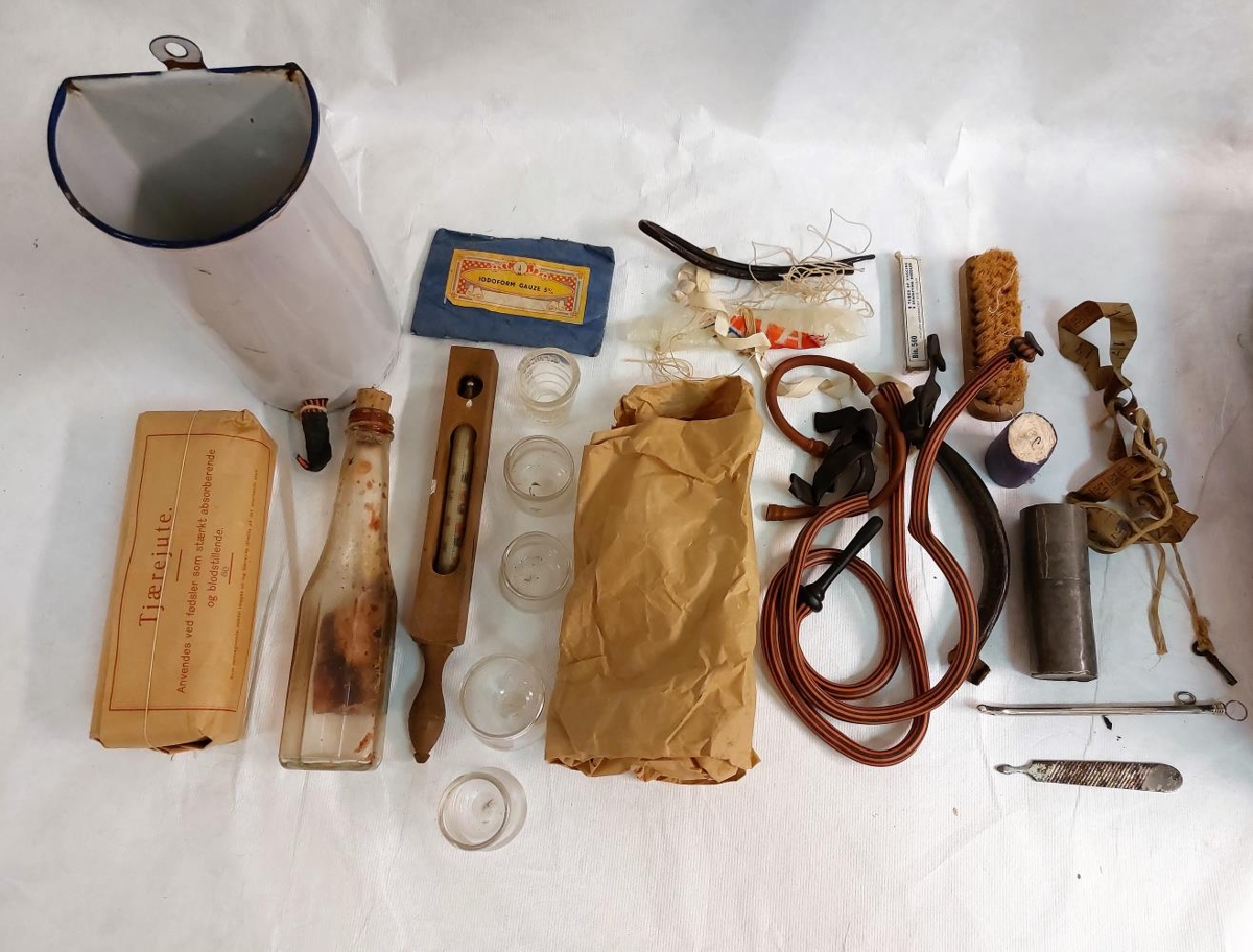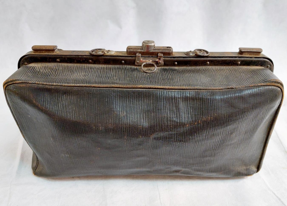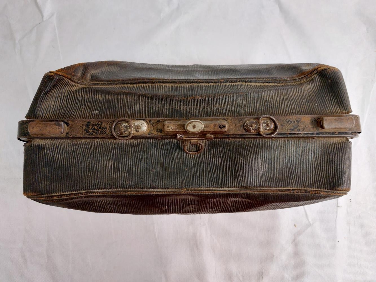 Ljósmóðurtaska Kristlaugar Tryggvadóttur frá Halldórsstöðum í Bárðardal. Í töskunni eru ýmis ljósmóðuráhöld.