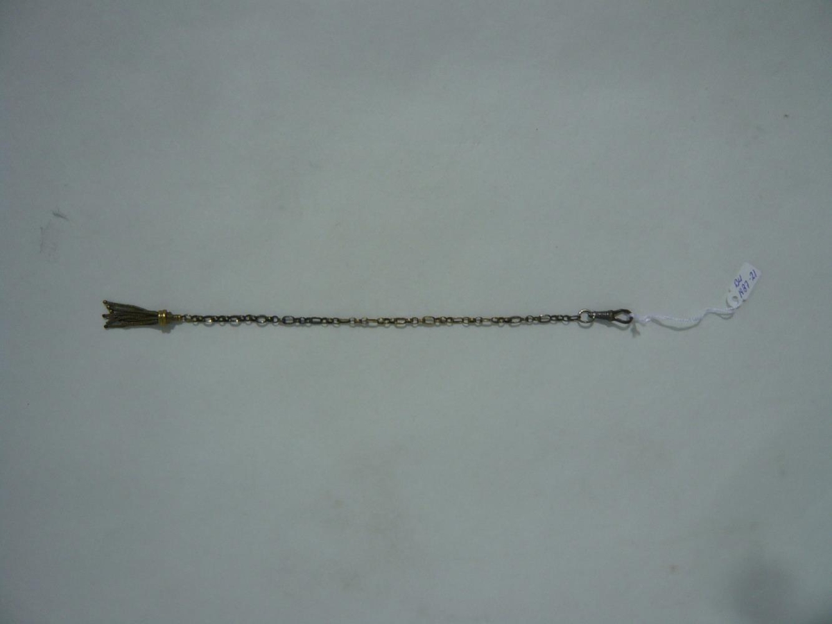 Úrfesti með silfurlit 24,5 cm ef með er talið einskonar kögur sem er á þeim enda sem ammars var ætlaður til að festa við vasa. Þessi festi virðist því ætluð eingöngu til skrauts, en ekki til festingar á úrinu.