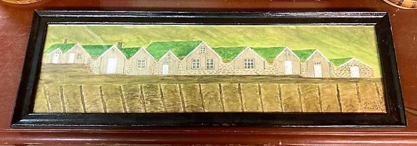 Teikning sem er vatnslituð. Er í svörtum ramma. Hún sýnir bæjarröð með 10 burstum. Kartöflugarður er fyrir framan. Í hægra horni er skrifað Fljótsdalur 1900 Teiknað ÁJ. Er þar átt við Ágúst Jónsson sem gerði R-4180 sem sýnir líka Fljótsdal í Fljótshlíð.