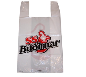 Hvítur plastpoki með rauðu merki SS (Sláturfélag Suðurlands)