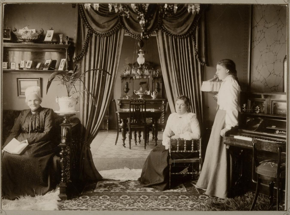 Ljósmynd, stofumynd, með frú Sigþrúði, ekkju Jóns háyfirdómara Pjeturssonar, og frú Þóru dóttur hans, konu Jóns ráðherra Magnússonar.