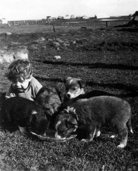 Örn Erlingsson frá Steinshúsi í Garði í heimsókn hjá ömmu sinni, Steinunni Steinsdóttur á Sólbakka.