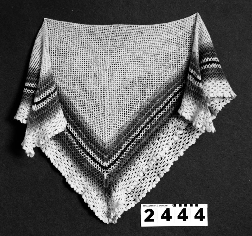 unninn úr íslenskri ull unnin af Ingibjörgu Þórðardóttur Hofi. Klúturinn