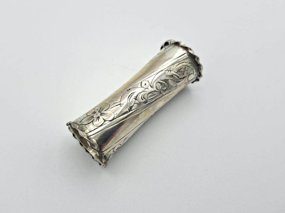 Skúfhólkur úr silfri, víðastur til beggja enda með rósum á hliðunum og snúrubryddingum á endum 5,0 sm langur. Talinn vera úr eigu Gróu Stefáns- dóttur prests frá Heiði í Mýrdal. Bjó síðast í Arnarbæli í Grímsnesi.