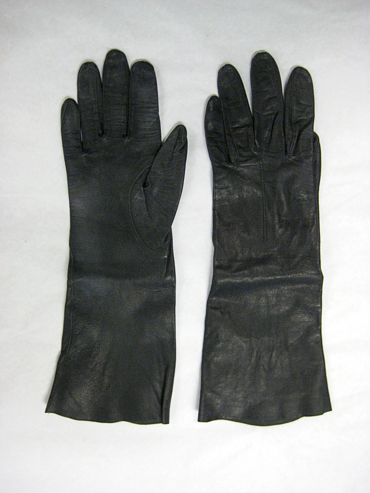 Tvennir kvenhanskar. 2658: Hvítir kvenhanskar, 2658 A: Svartir kvenhanskar. Pörin eru jafnstór.