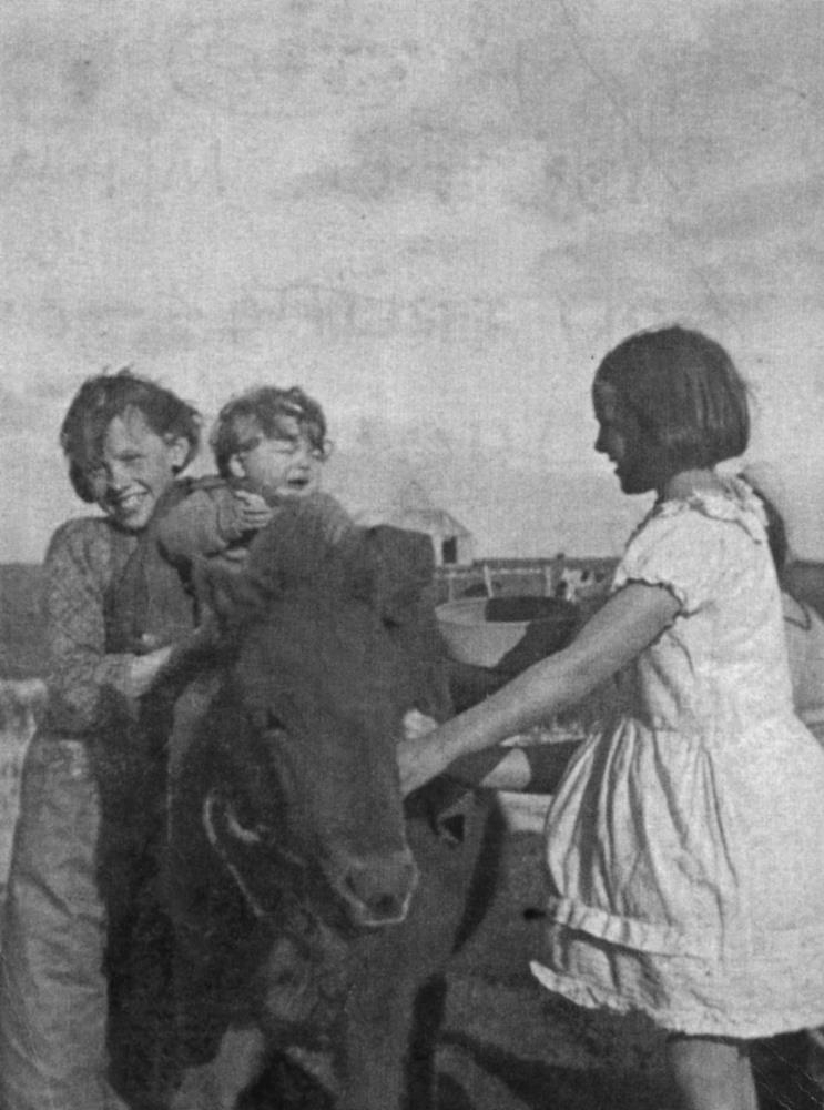 Þórhildur Gísladóttir frá Miðhúsum, Ingibjörg Gísladóttir frá Sólbakka og Örn Erlingsson frá Steinshúsi sem þarna situr á hestbaki. Öll voru þau búsett í Garðinum á þessum tíma.
