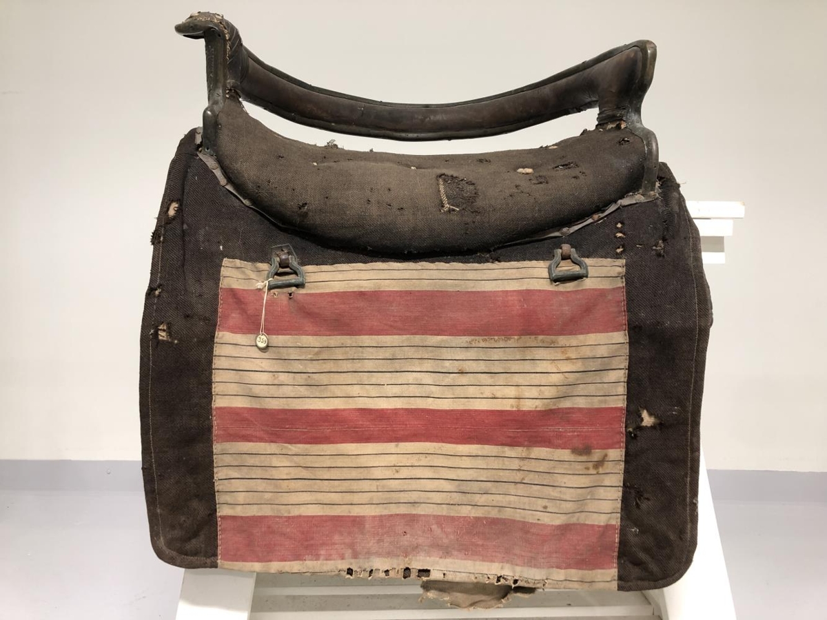 Kvensöðull með drifnu látúnsverki, ártali framan á nefinu 1858. Að aftan stöfunum S.Á, mun vera fangamark fyrsta eigandans. Hann er nokkuð slitinn og illa farinn. Söðullinn var lengi í eigu Þórunnar Magnúsdóttur á Úlfljótsvatni í Grafningi dáin árið 1931. Móðir Magnúsar lagaprófessors. Þjóðminjavörður Kristján Eldjárn hirti hann á Úlfljótsvatni sumarið 1947 og afhenti hann svo til Byggðasafns Árnesinga 12. september 1955.