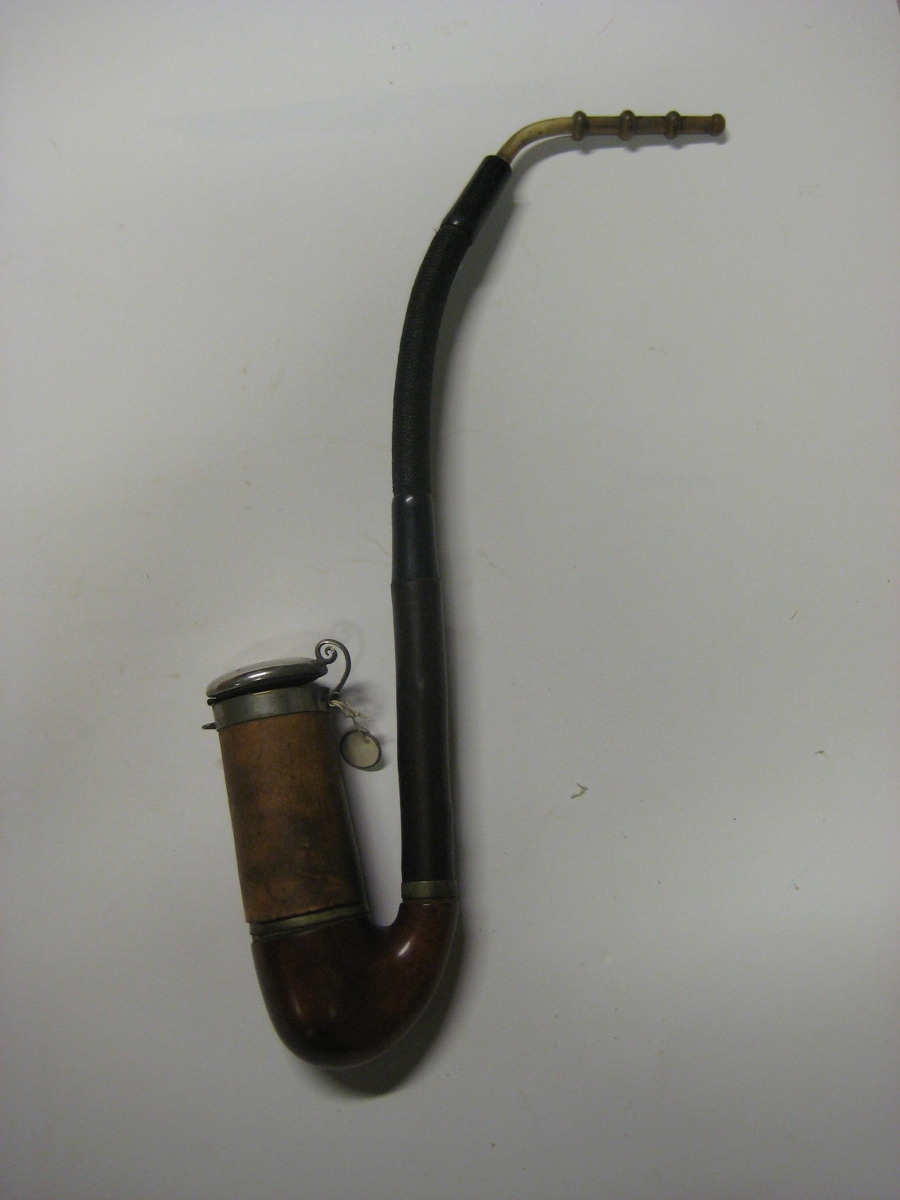 Reykjapípa, nokkuð stór með bognu togleurmunnstykki, úr eigu Þorsteins sýslumanns á Kiðjabergi í Grímsnesi.