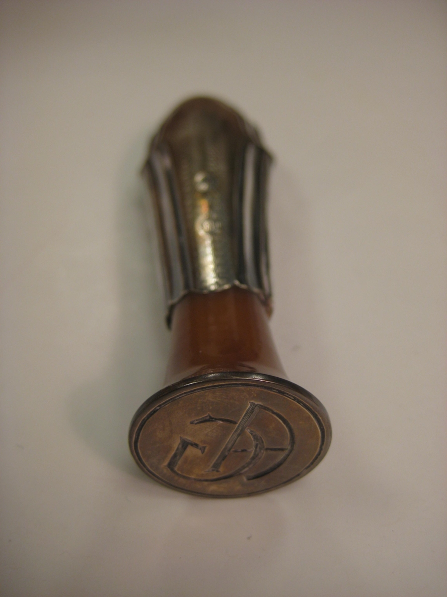 Innsigli sömu stílgerðar og bréfahnífur númer BÁ: 3332. Áletrun stimpilsins er AG. Úr fórum Arons Guðbrandssonar, frá Merkigarði á Eyrarbakka.