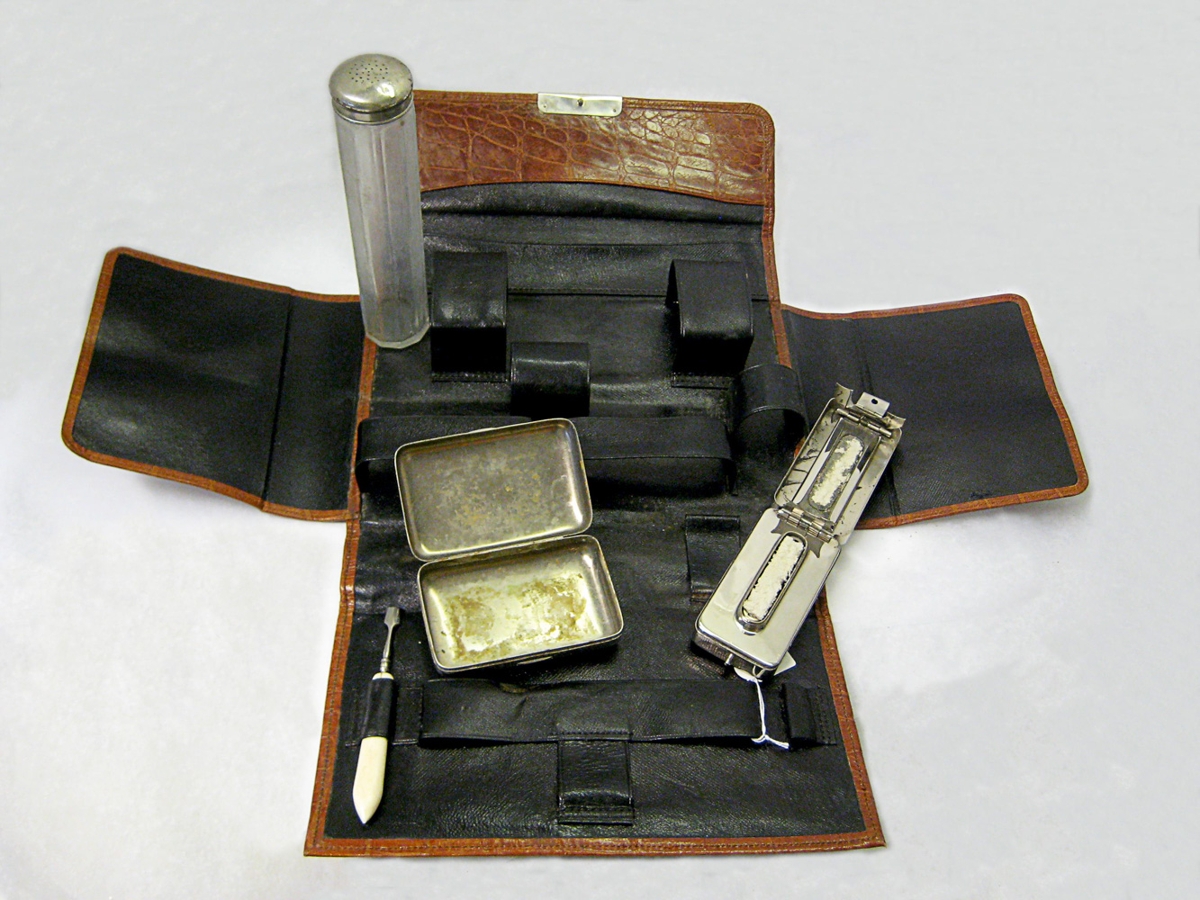 Ljósbrún taska með áhöldum sem notuð voru til að hreinsa föt, t.d. bustar. Ragna Jónsdóttir frænka gefanda átti þessa muni upphaflega. Úr dánarbúi Sigurðar Guðmundssonar bókara og Sigríðar Ólafsdóttur frá Stíghúsi á Eyrarbakka. Þau bjuggu á Grænuvöllum 6 á Selfossi og komu þangað frá Eyrarbakka þar sem Sigurður var snemma á tuttugustu öldinni póstafgreiðslumaður, bóksali og sparisjóðsstjóri hjá Sparisjóði Árnessýslu. Þau eignuðust 10 börn og eru þau gefendur.