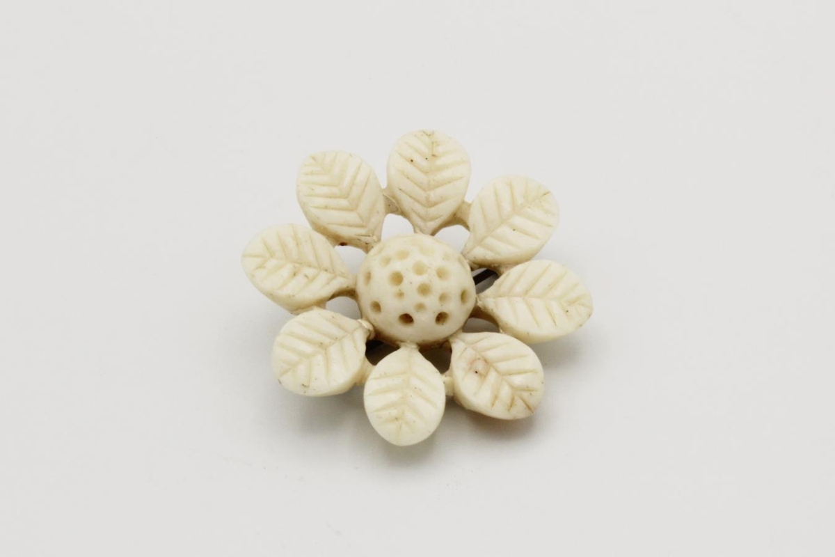 Næla. Brjóstnæla úr hvítu beini útskorin með 8 laufum og látúnslykkju í baki. Jóhann Guðmundsson var orðlagður smiður og listfengur við það sem hann fékkst við.Var giftur Bríeti Þórólfsdóttur dáin 28.2.1970, en Jóhann lést 1928 aðeins 39 ára gamall. Gripir númer BÁ: 1176-1193 eru gefnir af börnum Bríetar og Jóhanns, að henni látinni, og eru allir smíðaðir af Jóhanni.