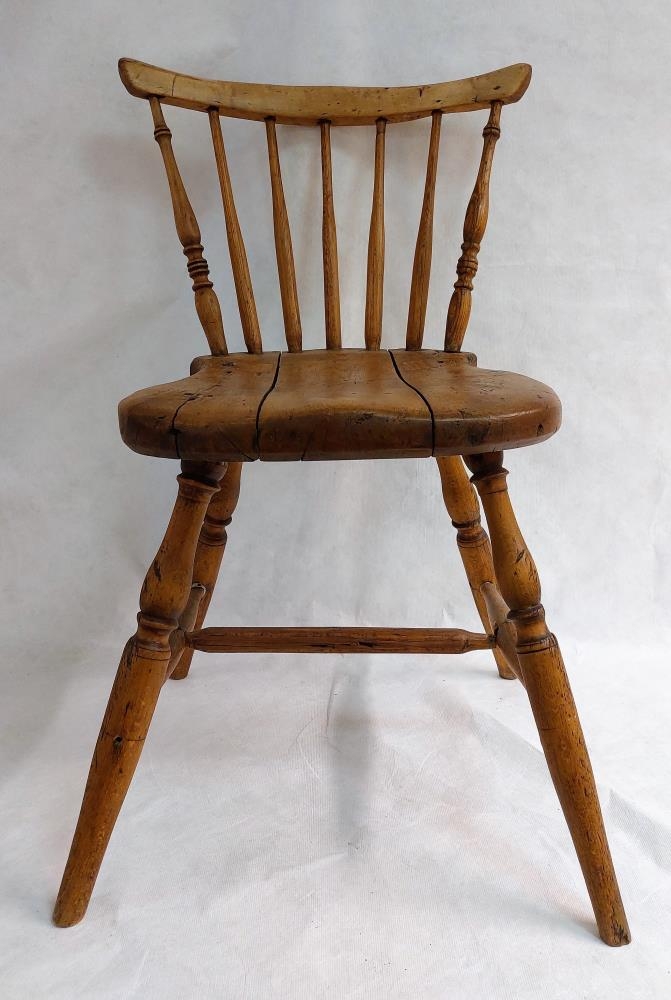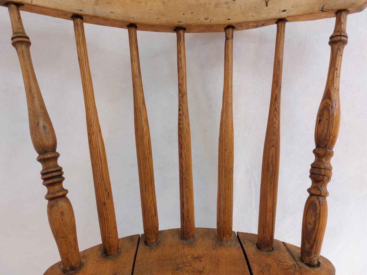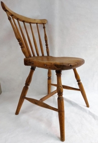 Handsmíðaður stóll. Karl Emil Friðriksson smíðaði hann handa konu sinni, Pálínu Jónsdóttur þannig að hann passaði henni nákvæmlega sem sæti við rokkinn hennar - sem hann smíðaði reyndar líka. Þau bjuggu á Stóruvöllum í Bárðardal og á Hálsi í Kinn, S-Þing. Gefinn til safnsins af Svanhildi Hermannsdóttur.