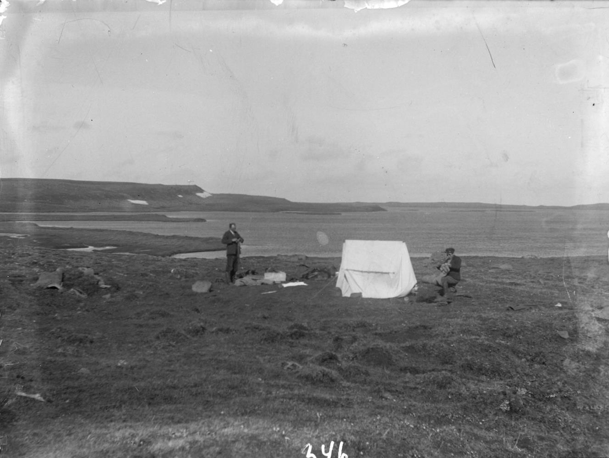 Sæmundur G Jóhannesson f.13.11.1899 d.18.9.1990 og óþekktur maður við tjald á ferðalagi.