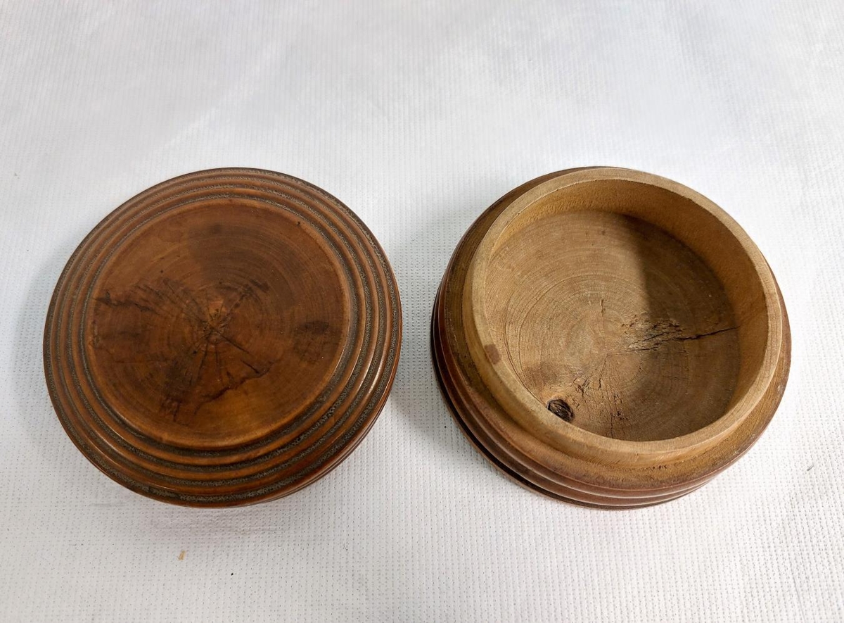 Handsmíðuð tréaskja. Karl Emil Friðriksson smíðaði það handa konu sinni, Pálínu Jónsdóttur. Þau bjuggu á Stóruvöllum í Bárðardal og á Hálsi í Kinn, S-Þing. Gefið til safnsins af Svanhildi Hermannsdóttur.