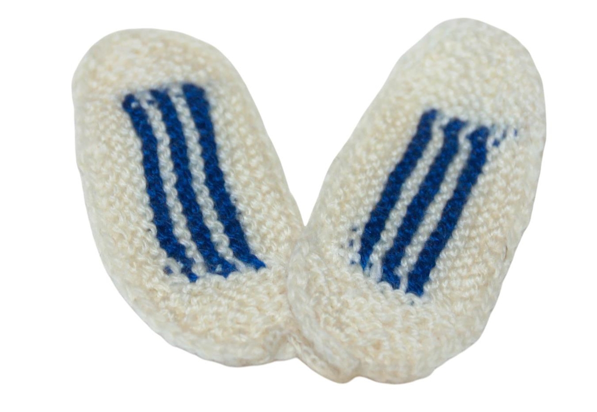 Hvítir leppar með þremur bláum röndum.