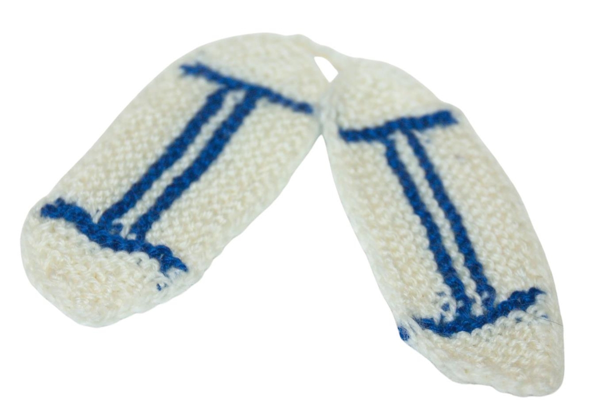 Hvítir leppar með tveimur bláum röndum.