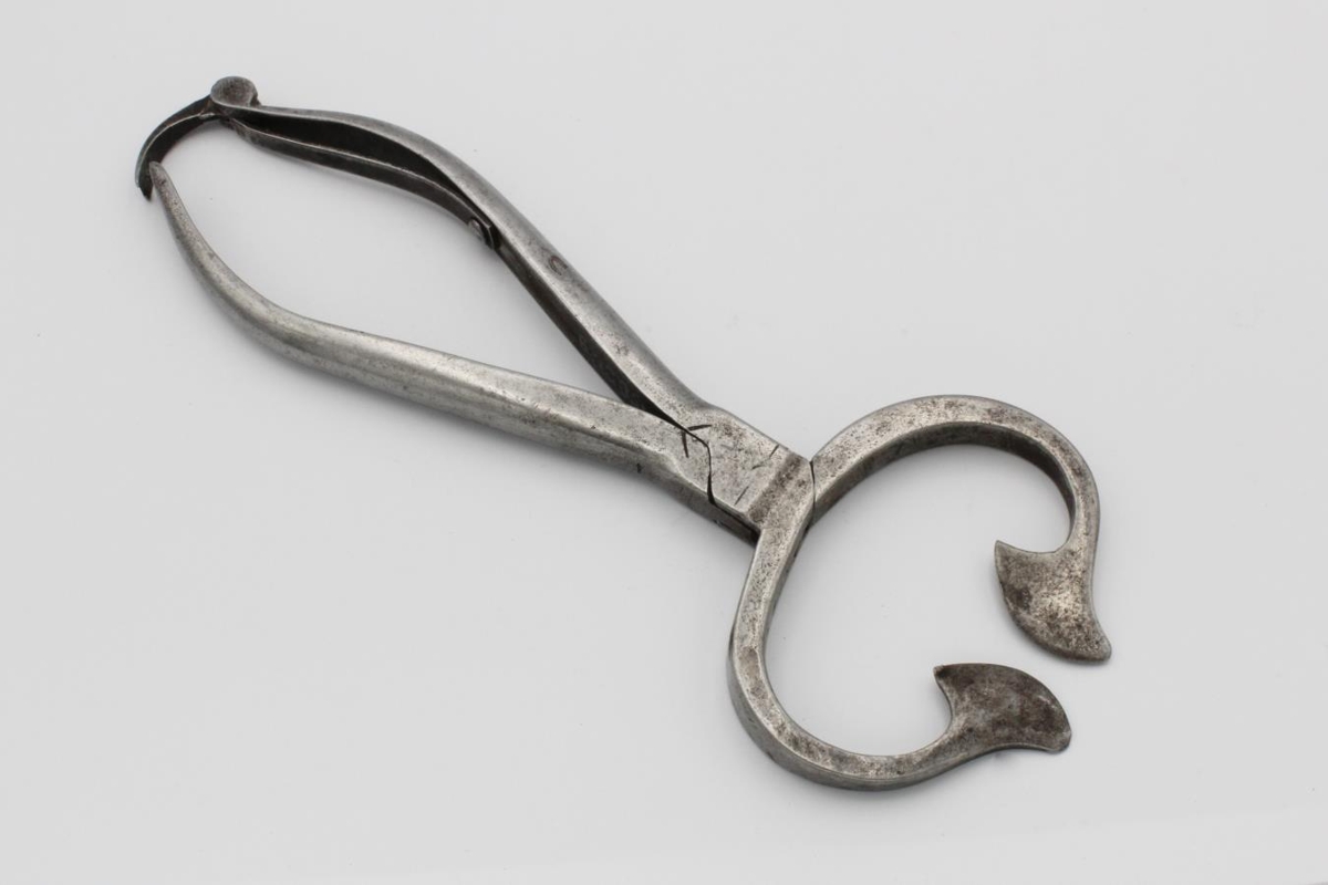 Járntangir nokkuð stórar, fjöðrin er brotin. Talinn af innlendri gerð. Úr fórum Stíghús fjölskyldunnar á Eyrarbakka.