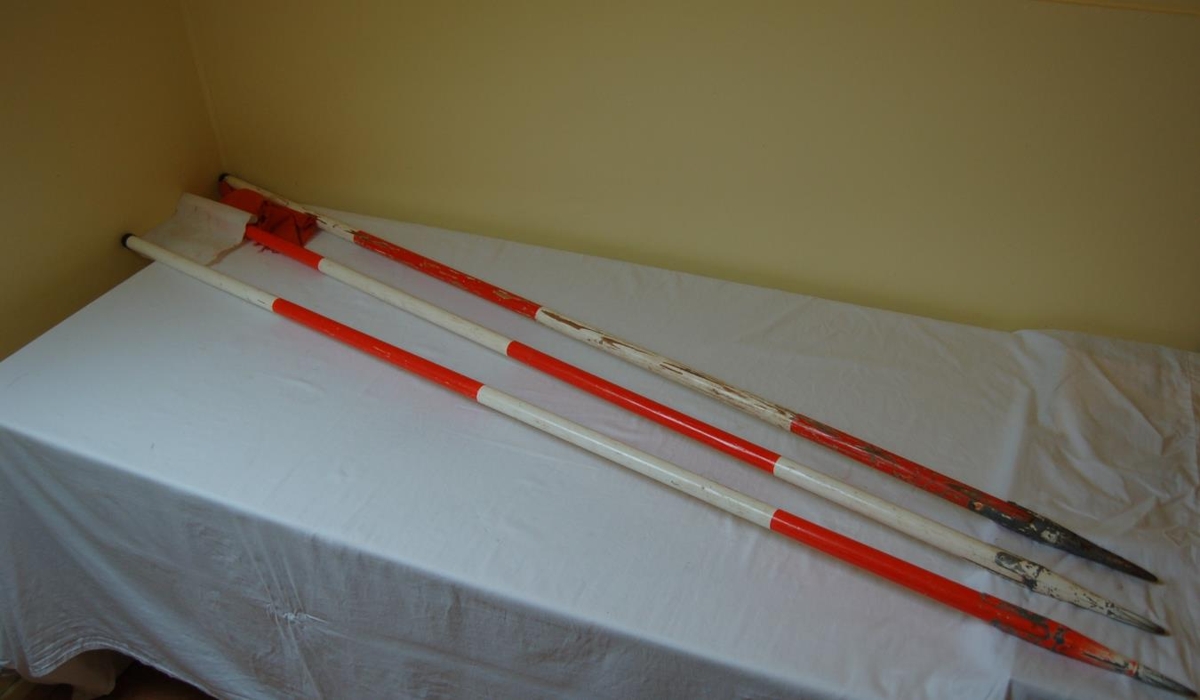 Þrjár stikur, ein með rauðu flaggi, önnur með hvítt og sú þriðja án þess. Notaðar til að stika út í landmælingum. Við lokun höfuðstöðva Bændasamtakanna í Bændahöllinni gáfu samtökin safninu nokkra muni sem notaðir voru við meðal annars landmælingar og rannsóknir. Sérfræðingar og ráðunautar á vegum Bændasamtakanna og annarra sérsambanda þeirra innan notuðu þessi áhöld til vinnu, rannsókna og mælinga.