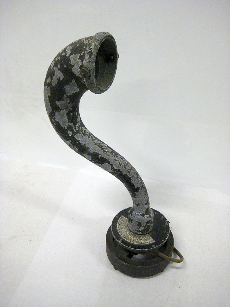 Var í forstofunni á Kiðjabergi í Grímsnesi. Óvíst er um nákvæma notkun, en virðist frekar vera úr útvarpi en grammófóni. Því að það er tengt rafmagni, sem grammófónar voru ekki þar sem þeir voru trektir. Þetta er frá Telefunken.