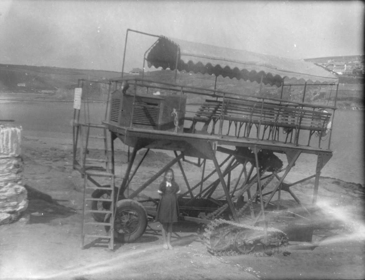 Barbara Gook f.24.3.1926 við mótordrifna ferja sem fór yfir á í Englandi.