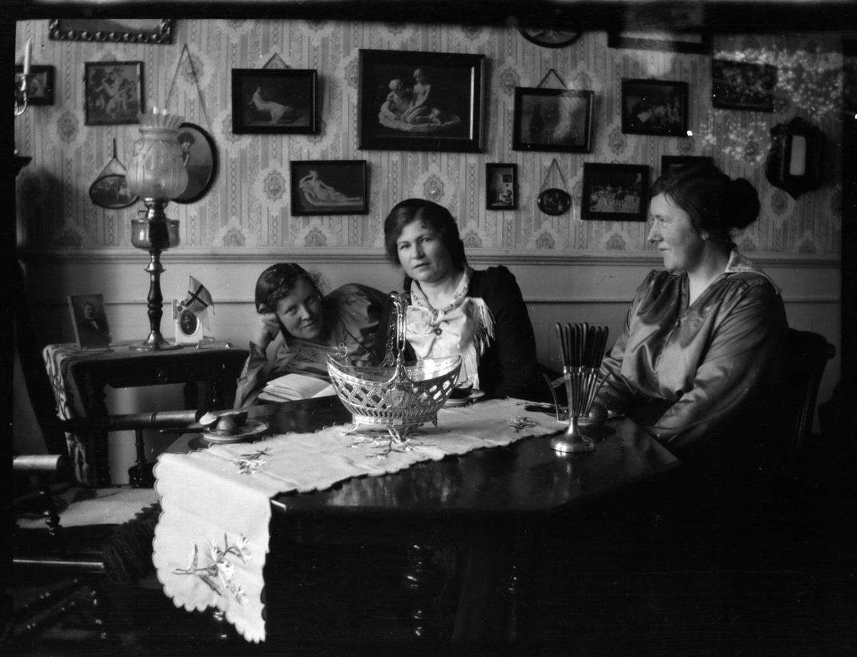 „Held að konan í miðjunni sé Sigríður Magnúsdóttir (1886-1952) en hún var gift Ólafi Lárussyni prófessor.“ (SBBP 2022)