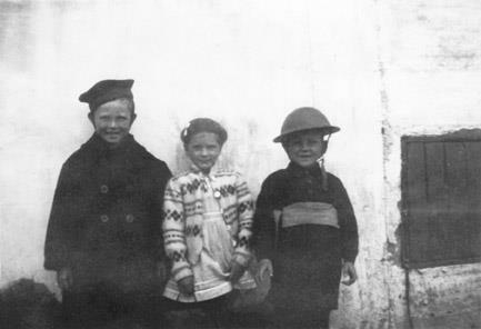 Frá vinstri: Rúnar Guðmundsson frá Réttarholti í Garði og frændsystkini hans, Ingigerður Þórey og Eiður Svanberg Guðnabörn fyrir framan Réttarholt árið 1945.